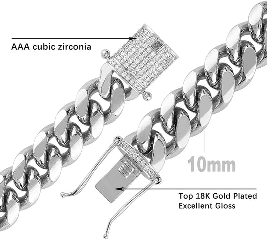 Miami Cuban Link Chain Set for Men 18K Gold Plated Stainless Steel 10/12Mm Curb Bracelet Necklace Diamond Chains