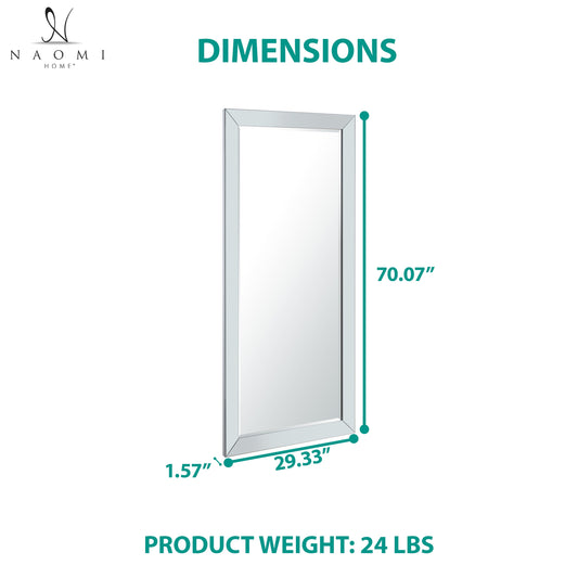 Mirrored Bevel Floor Mirror 70" X 30" by