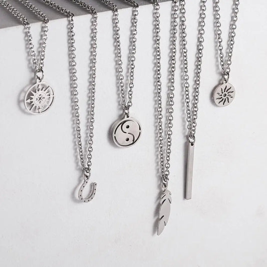 Men Necklace Stainless Steel Necklace Women Men Simple Long Chain Rectangular Pendant Necklace Statement Couples Choker Gifts
