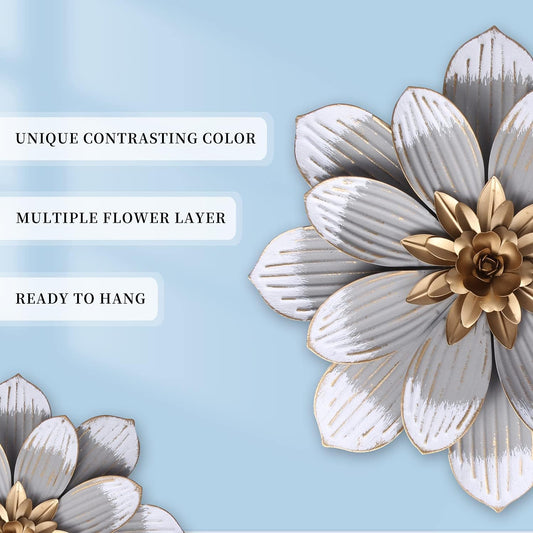 Metal Flower Wall Decor Fence Indoor Outdoor Decoration 13 Inches Grey Flower Art Wall Hanging for Home, Bedroom, Living Room, Bathroom, Garden Hanging Decoration