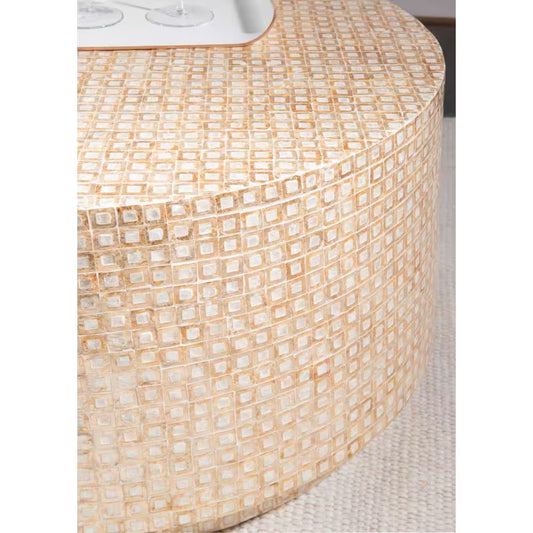 Mina 29.92 In. Gold round Resin Top Capiz Shell Coffee Table