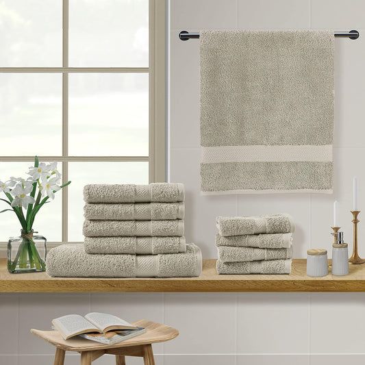 Platinum Luxury Bath Towel Set - 100% Cotton, Quick Dry, 2 Large, 4 Soft Hand, 4 Wash Towels for Body and Face