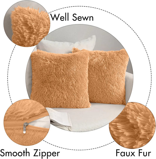 Throw Pillow Covers Pillow Protector with Hidden Zipper Furry Faux Fur 18''X18'' 2 Pack
