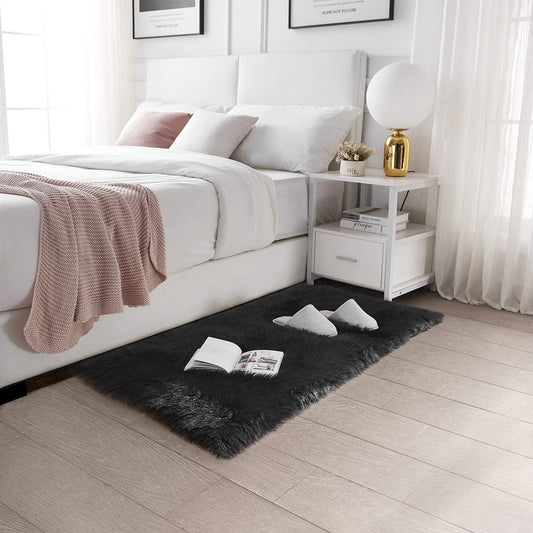 Ultra Soft Faux Fur Area Rug Black Fluffy Rug Plush Chair Cover Seat Pad Fuzzy Carpet Furry beside Rugs for Bedroom Floor Sofa Living Room 2X4 Feet (Rectangular,Black)
