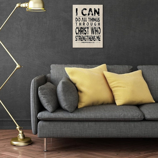 USA Design Wooden Inspirational Wall Art Scripture Decorative Sign Christian Motivational Prints Home Farmhouse Retro Poster Office Room Bedroom Decorations (I Can Do All Things)