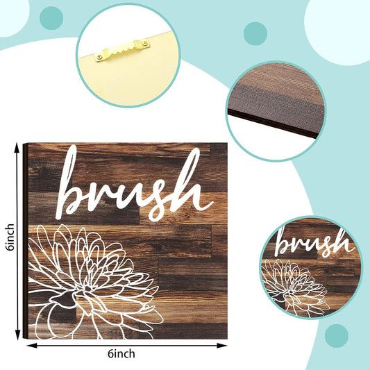 4 Pieces Bathroom Wall Decor Farmhouse Bathroom Wall Art Pictures Decor Hanging Wooden Sign Vintage Rustic Plaque 5.9 X 5.9 Inches Unframed for Home Spa Office Kitchen(Brown)