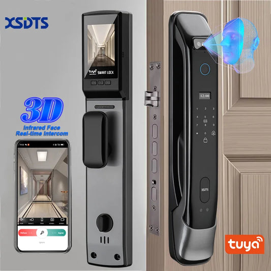 3D Real-Time Intercom Face Recognition Digital Door Lock with Camera Fingerprint Password Unlock Keyless Electronic Door Lock