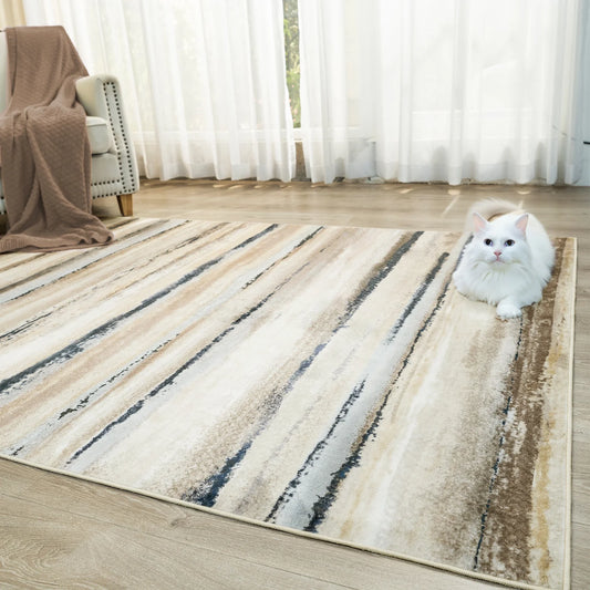 8'X10' Washable Non-Slip Area Rug, Modern Abstract Contemporary Brown Rugs, Ultra-Soft Indoor Farmhouse Carpet for Living Room, Bedroom, Dining Room