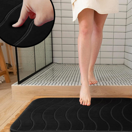 5-Piece Bathroom Rug Set - Memory Foam Bath Mat, Non-Slip, Machine Washable, Ultra-Soft, Water Absorbent, Black