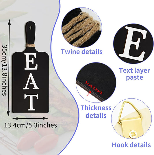 3 Pieces Spoon and Fork Wall Decor Cutting Board Eat Wood Sign Wall Decor Rustic Farmhouse Wall Hanging Wooden Kitchen Decor for Home Dining Living Room Bar Cafe Decoration (Dark Color)