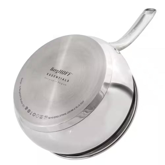 Belly Shape 4-Piece 18/10 Stainless Steel Skillet and Saucepan Set, SS Lid