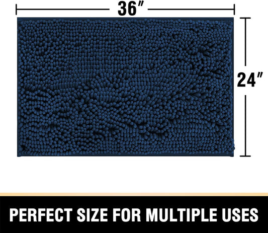 Bathroom Rugs Bath Mat Bath Rugs Bath Mats for Bathroom Non Slip Extra Thick Buncy Soft Chenille Bath Rug Fulffy Shag, Indoor Rug Carpet for Living Room (Navy, Extra Large 24" X 36")
