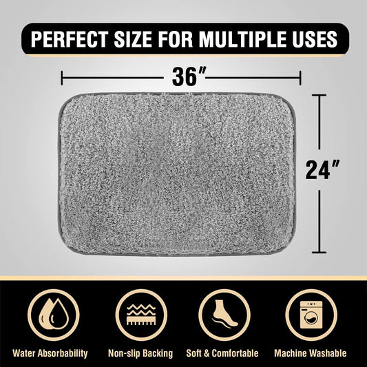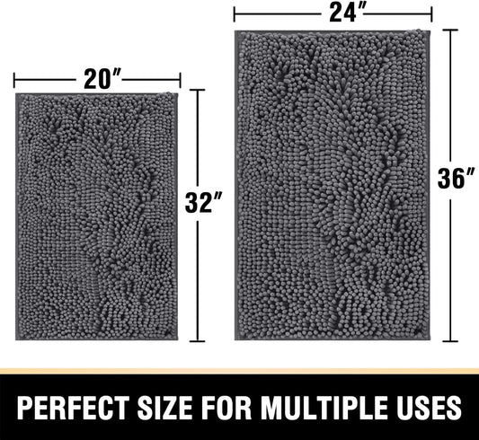 Bath Mats - Non Slip Luxury Chenille Bathroom Rugs, Extra Soft Absorbent Shaggy, Washable Fast Dry 2 Piece (Grey, 24" X 36"/20" X 32")