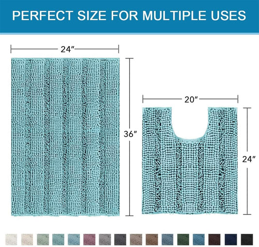 Bathroom Rugs Bath Rug Set 2 Piece Bathroom Contour Rug Toilet Mat Sets Non Slip Contour Bath Rug Ultra Thick Water Absorbent Striped Bath Mats(36" X 24" plus 20" X 24" U, Aqua Haze)