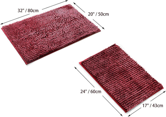Bathroom Rugs Set - 2 Piece Butter Chenille Bath Rugs with Non Slip Backing, Super Absorbent Thick Soft Plush Bath Mats for Bathroom, Tub, Shower (Burgundy, 20"X32" / 17"X24")