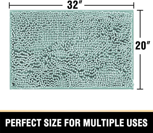 Bathroom Rugs Bath Mat Bath Rugs Bath Mats for Bathroom Non Slip Extra Thick Buncy Soft Chenille Bath Rug Fulffy Shag, Indoor Rug Carpet for Entry Living Room (Aqua Foam, 20" X 32")