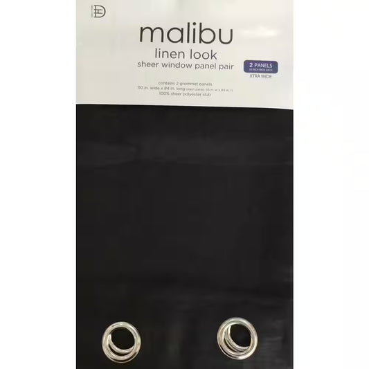 Black Solid Grommet Sheer Curtain - 55 In. W X 84 In. L (Set of 2)