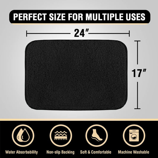 Bathroom Rug Tufted Bath Rug Bath Mat Non Slip Area Rug 17" X 24" Extra Soft Thick Absorbent Shaggy Kitchen Rug Indoor Mat Microfiber Bath Mat for Bathroom Fast Dry - Black