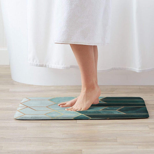 Bath Mat Modern Bathroom Mat Non Slip Absorbent Super Cozy Velvet Bathroom Rug Teal Hexagons Carpet 16" X 24" Bathroom Rug Mat for Bathroom