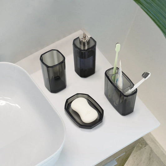 Bathroom Accessories Set, 4Pcs Elegant Acrylic Bathroom Decor, Grey Vanity Storage, Lotion Soap Dispenser, Soap Dish, Toothbrush Holder, Acrylic Tumbler, Home Essentials for Women