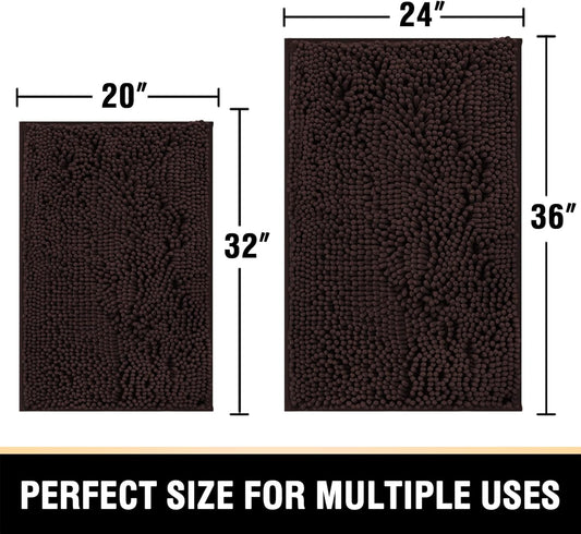 Bathroom Rugs Bath Mats for Bathroom Non Slip Luxury Chenille Bathroom Rugs Extra Soft Absorbent Shaggy Bathroom Mat Rugs Washable Fast Dry 2 Piece (Chocolate, 24" X 36"/20" X 32")