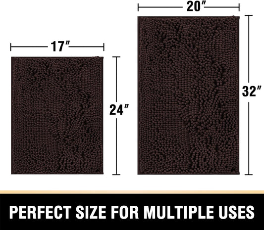 Bathroom Rugs Bath Mats for Bathroom Non Slip Luxury Chenille Bathroom Rugs Extra Soft Absorbent Shaggy Bathroom Mat Rugs Washable Fast Dry 2 Piece (Chocolate, 20" X 32"/17" X 24")