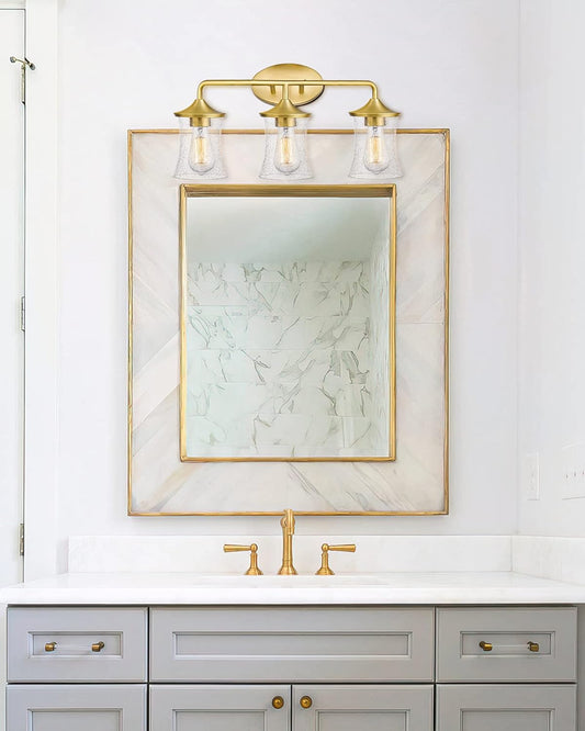 Brushed Gold Bathroom Light Fixtures, Vanity Lights for Bathroom with Seeded Glass Shade for Bathroom