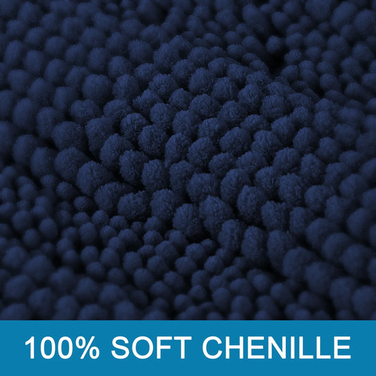 Chenille Shaggy Rug Collection Contemporary Solid Print Navy Microfiber Polyester Bath Rugs, 20" X 32" plus 17" X 24", Machine Washable, 2 Count