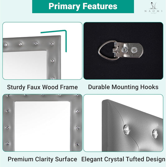 Crystal Tufted Floor Mirror Full Length, 63" LX22 W Wall Mirror, Standing Mirror,Wall Mirror with Faux Wood Frame, Full Length Mirrors for Bedroom - Gray