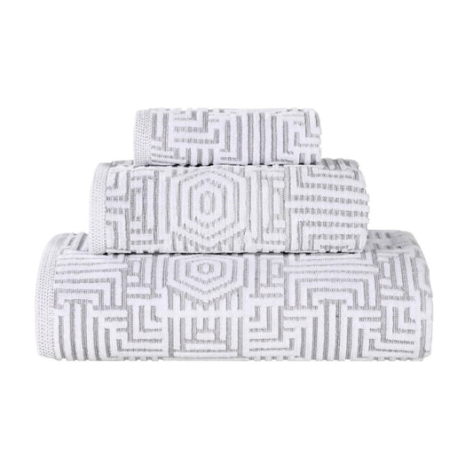 Cotton Modern Jacquard 3-Piece Towel Set, Platinum