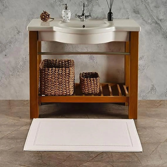 Cream Bath Mats, 21 X 34 Inches, Pack of 2 - 100% Ring Spun Cotton, Banded Design, Highly Absorbent, Machine Washable for Bathroom Floor