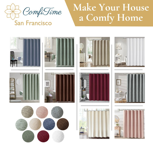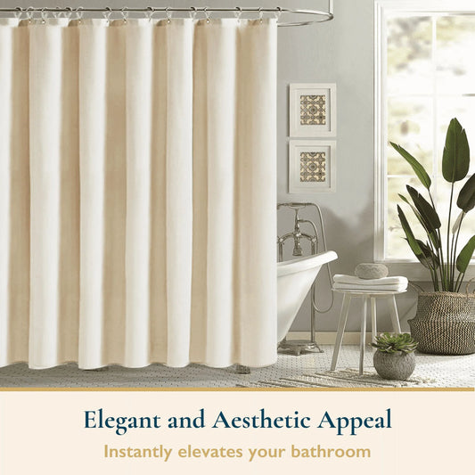 Fabric Shower Curtain with Hooks – 210 GSM Heavy-Duty Faux Linen Hotel Luxury Cloth Bathroom Curtain, Weighted Hem, Water-Repellent, Mold-Resistant, Machine-Washable, 72 X 78 In, Beige