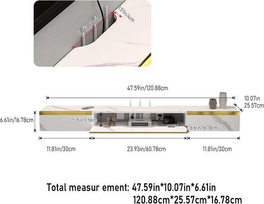 Floating TV Shelf with 3 Doors, 47'' Wall Mounted Wood Floating TV Console Entertainment Media Shelf TV Wall Unit with Storage for Bedroom Living Room(White)