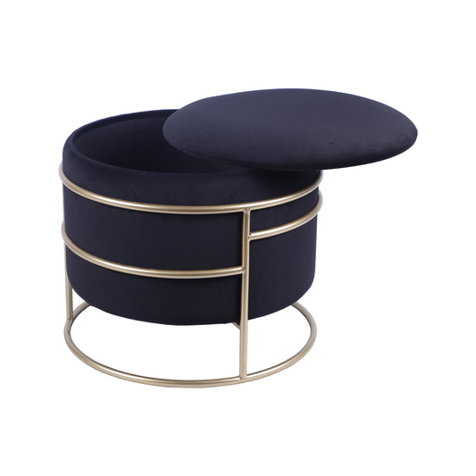 Elegant Velvet round Ottoman with Gold Frame and Storage, Black