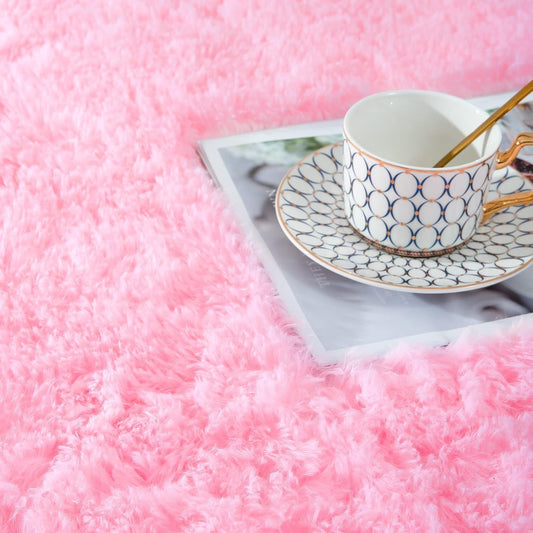 Fluffy Area Rugs for Bedroom, Soft Shaggy Rug for Living Room, Nursery Indoor Rugs Plush Floor Carpet Non-Slip Furry Play Mat for Kids Girls Room Modern Home Decor, 4 X 5.3 Feet Pink