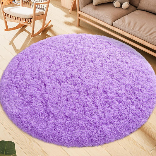 Fluffy round Rug for Kids Room, Soft Circle Area Rugs for Girls Bedroom, Cute Princess Castle Nursery Rug Shaggy Circular Carpet for Teens Girls Baby Bedroom Home Decor, 5 X 5 Feet Purple