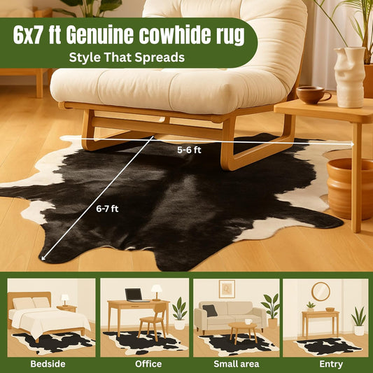 Genuine Cowhide Rug: Real Animal Print Rug for Western Home Decor & Rustic Cow Rugs for Living Room - Hand-Picked Western Rugs, 6X7Ft - Unique Country Style Hide Decor - Black and White
