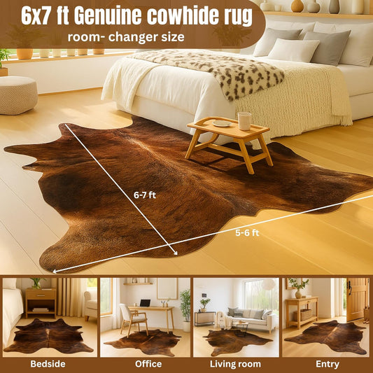 Genuine Cowhide Rug: Real Animal Print Rug for Western Home Decor & Rustic Cow Rugs for Living Room - Hand-Picked Western Rugs, 6X7Ft - Unique Country Style Hide Decor - Dark Brindle