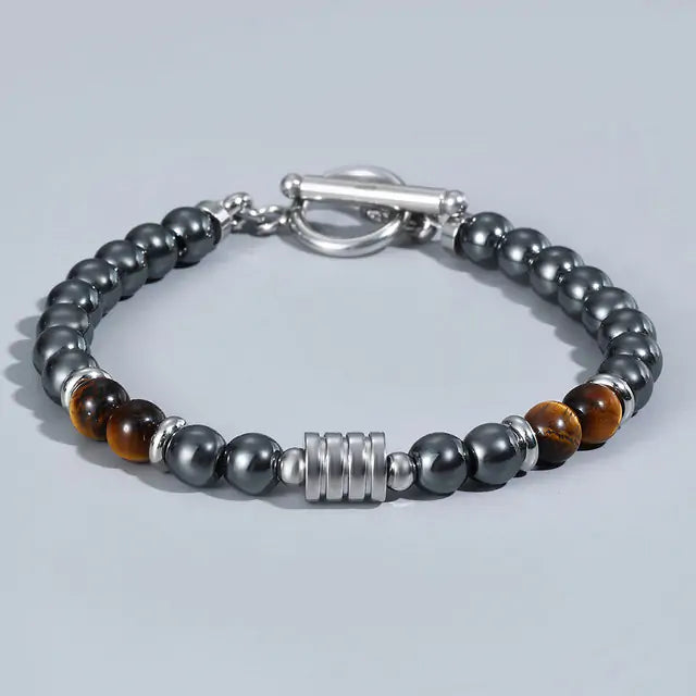 Enhance your wrist with our Clasp Tiger Eye Bracelet, combining elegance and masculinity in a single piece.