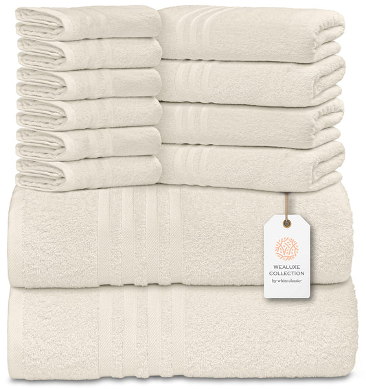 12 Piece Bath Towel Set for Bathroom - Wealuxe Collection 2 Bath Towels, 4 Hand Towels, 6 Washcloths 100% Cotton Soft and Plush Highly Absorbent, Soft Towel for Hotel & Spa - Ivory